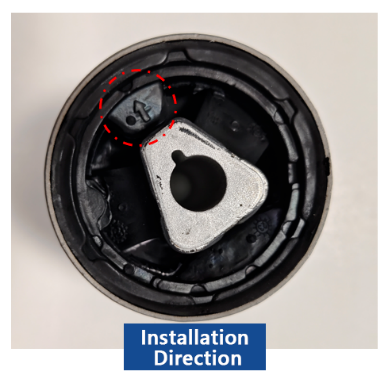Sajrone instalasi, mesthekake bagean padhet (non-split) saka bushing didadekake siji karo arah maju horisontal lelungan kendaraan. Yen bushing nduweni panah orientasi, panah iki kudu maju menyang arah lelungan.
