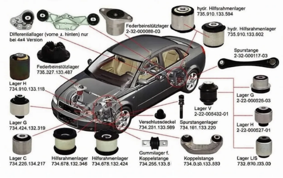 Minangka jeneng kasebut, bushing karet otomotif yaiku bushing sing digawe saka bahan karet. Digunakake sacara wiyar ing pirang-pirang area kendaraan-kalebu sistem suspensi, pemasangan mesin, lan drivetrain-kanggo ningkatake kinerja sakabehe lan menehi pengalaman nyopir sing luwih nyaman.
