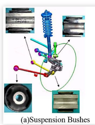 Kepiye insinyur nganalisa karakteristik kesel saka bushing karet ing sistem suspensi otomotif?