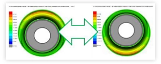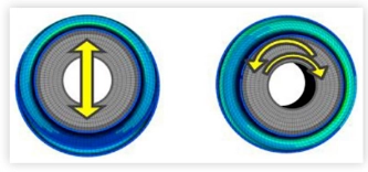 Tokoh ing ngisor iki nuduhake model unsur winates saka bushing suspensi tartamtu ing beban radial lan plot kontur asil pitungan.