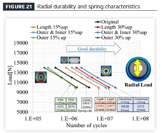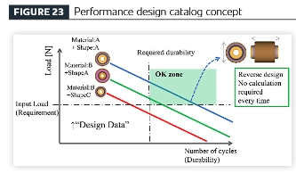 Kanggo isolator geter karet, syarat kinerja bisa uga ngarahake keseimbangan optimal antarane daya tahan beban radial lan daya tahan torsi, utawa daya tahan torsi bisa uga penting. Babagan karakteristik spring, nalika tingkat spring alus asring seng di pengeni kanggo gangguan, geter, lan comfort numpak, spring relatif stiffer kadhangkala perlu kanggo mesthekake nangani tliti lan stabilitas kendaraan. Wiwit data desain komponen kanthi atribut kinerja sing ditetepake dipilih miturut target kinerja kendaraan kabeh-lan atribut kasebut sacara intrinsik disambung karo parameter dimensi-dimensi komponen bisa direkayasa mbalikke wiwit saka metrik kinerja sing dikarepake. Pendekatan iki mbisakake target kinerja bisa ditetepake sajrone fase konseptual awal pangembangan kendharaan, sanajan ora ana gambar sing rinci, lan ngidini tata letak komponen karet bisa diturunake adhedhasar kinerja sing dikarepake. Kanthi nggunakake katalog kinerja iki, dimensi komponen bisa ditemtokake wiwit wiwitan miturut spesifikasi kinerja-nyingkirake kabutuhan analisis FEM sing bola-bali, ngindhari iterasi desain lan ngolah maneh sajrone tahap pangembangan sing rinci, lan nggampangake implementasine kanthi cepet saka perencanaan akurasi dhuwur.