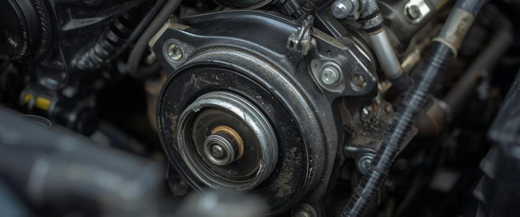 Mesin obah narik barang-kabel lan narik selang. Sampeyan bisa uga ndeleng selang coolant retak, sabuk sing wis rusak, utawa kipas angin sing kena ing kain kafan. Yen sampeyan terus ngganti sabuk, priksa gunung.